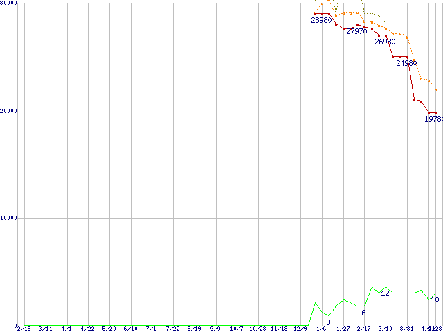 PX-128M2S (128GB,MLC)の価格推移↑前グラフ↓次グラフ(2010年2月18日〜2011年4月28日)※このグラフは過去のデータも税率5%相当に調整した税込み相当額のグラフです。●関連グラフHDD/SSD主要製品の最安値推移HDD/SSD主要製品(最安値1万5千円〜2万円未満)の最安値推移HDD 100〜160GB未満の最安値推移M2S (SSD,6Gbps,2.5インチ,リード400〜300MB/s・ライト300〜100MB/s)の最安値推移●凡例最安値(点線部は販売店未確認または未調査)平均値最高値ショップ数