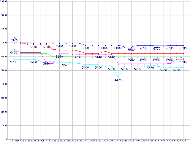 | ※製品名をクリックすると個別のグラフを表示します ※点線部は販売店が確認できなかった、または調査データがないことを示します | |