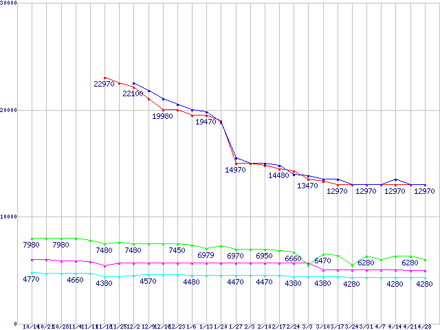 | WD Caviar Green (3Gb/s)の最安値推移 |