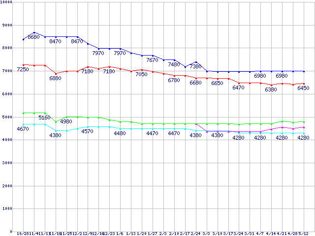 | ※製品名をクリックすると個別のグラフを表示します ※点線部は販売店が確認できなかった、または調査データがないことを示します | |