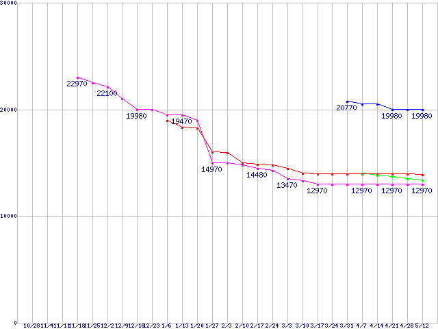 | ※製品名をクリックすると個別のグラフを表示します ※点線部は販売店が確認できなかった、または調査データがないことを示します | |