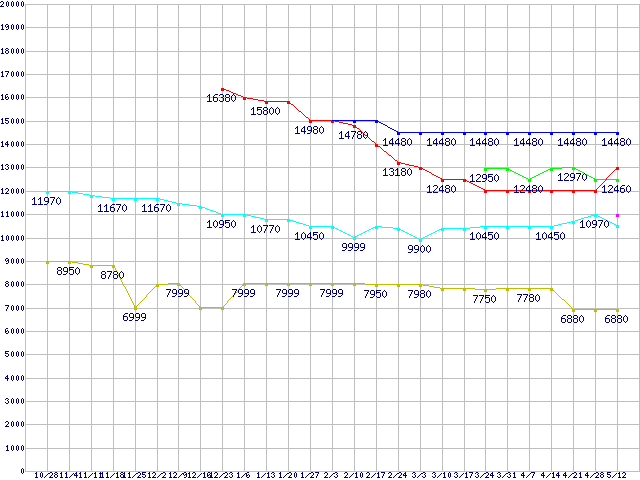 | ※製品名をクリックすると個別のグラフを表示します ※点線部は販売店が確認できなかった、または調査データがないことを示します | |