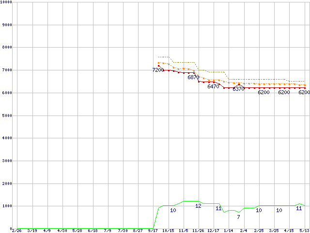 Athlon II X2 265 (3.3GHz,L2 1MB×2,TDP 65W)の価格推移↓次グラフ(2010年2月26日〜2011年5月13日)※このグラフは過去のデータも税率5%相当に調整した税込み相当額のグラフです。●関連グラフCPU主要製品の最安値推移CPU主要製品(最安値1万円未満)の最安値推移AMD系CPUの最安値推移Socket AM3 (Dual Core)の最安値推移●凡例最安値(点線部は販売店未確認または未調査)平均値最高値ショップ数