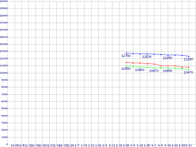 | LGA1155 (Smart Cache 3MB,Dual Core,GPU内蔵,Hyper-Threading)の最安値推移 |