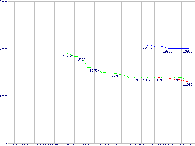 | ※製品名をクリックすると個別のグラフを表示します ※点線部は販売店が確認できなかった、または調査データがないことを示します | |