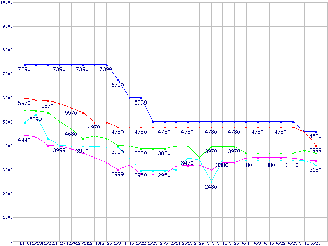 | ※製品名をクリックすると個別のグラフを表示します ※点線部は販売店が確認できなかった、または調査データがないことを示します | |