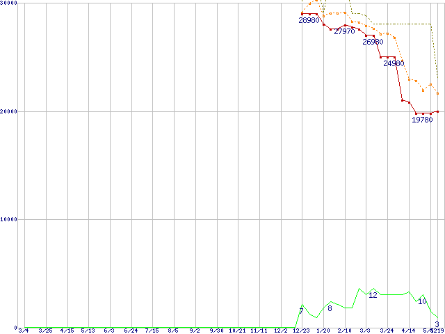PX-128M2S (128GB,MLC)の価格推移↑前グラフ↓次グラフ(2010年3月4日〜2011年5月19日)※このグラフは過去のデータも税率5%相当に調整した税込み相当額のグラフです。●関連グラフHDD/SSD主要製品の最安値推移HDD/SSD主要製品(最安値1万5千円〜2万円未満)の最安値推移HDD 100〜160GB未満の最安値推移M2S (SSD,6Gbps,2.5インチ,リード400〜300MB/s・ライト300〜100MB/s)の最安値推移●凡例最安値(点線部は販売店未確認または未調査)平均値最高値ショップ数