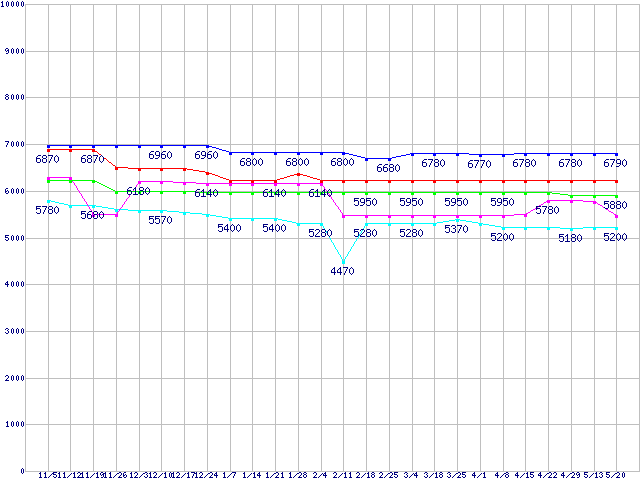 | ※製品名をクリックすると個別のグラフを表示します ※点線部は販売店が確認できなかった、または調査データがないことを示します | |