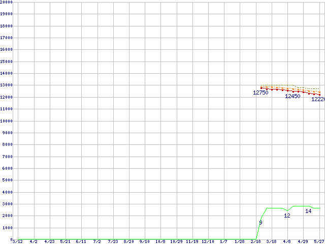 Core i3-2120 (3.3GHz,TDP 65W)の価格推移↑前グラフ↓次グラフ(2010年3月12日〜2011年5月27日)※このグラフは過去のデータも税率5%相当に調整した税込み相当額のグラフです。●関連グラフCPU主要製品の最安値推移CPU主要製品(最安値1万円〜2万円未満)の最安値推移Intel系CPUの最安値推移LGA1155 (Smart Cache 3MB,Dual Core,GPU内蔵,Hyper-Threading)の最安値推移●凡例最安値(点線部は販売店未確認または未調査)平均値最高値ショップ数