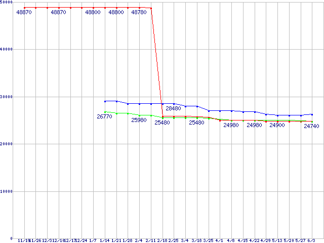 | CPU主要製品(最安値2万円〜3万円未満)の最安値推移 |