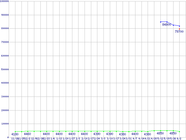 | ※製品名をクリックすると個別のグラフを表示します ※点線部は販売店が確認できなかった、または調査データがないことを示します | |