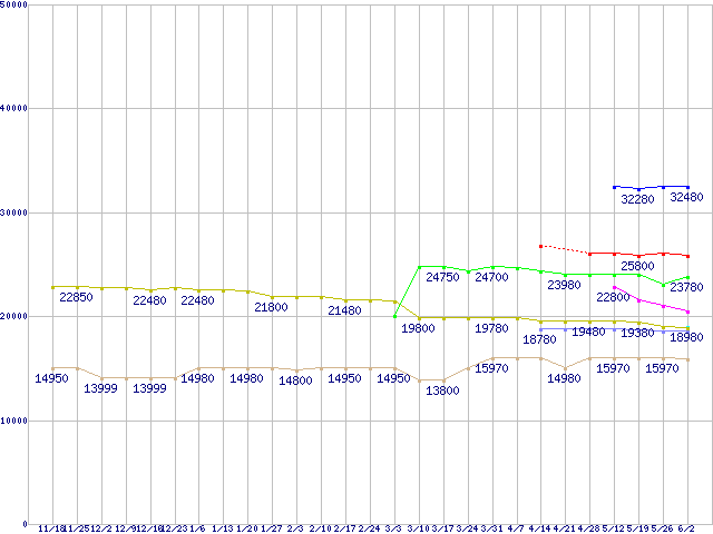 | ※製品名をクリックすると個別のグラフを表示します ※点線部は販売店が確認できなかった、または調査データがないことを示します | |