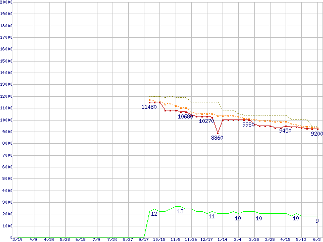 Athlon II X4 645 (3.1GHz,L2 512KB×4,TDP 95W)の価格推移↑前グラフ↓次グラフ(2010年3月19日〜2011年6月3日)※このグラフは過去のデータも税率5%相当に調整した税込み相当額のグラフです。●関連グラフCPU主要製品の最安値推移CPU主要製品(最安値1万円未満)の最安値推移AMD系CPUの最安値推移Socket AM3 (Quad Core)の最安値推移●凡例最安値(点線部は販売店未確認または未調査)平均値最高値ショップ数