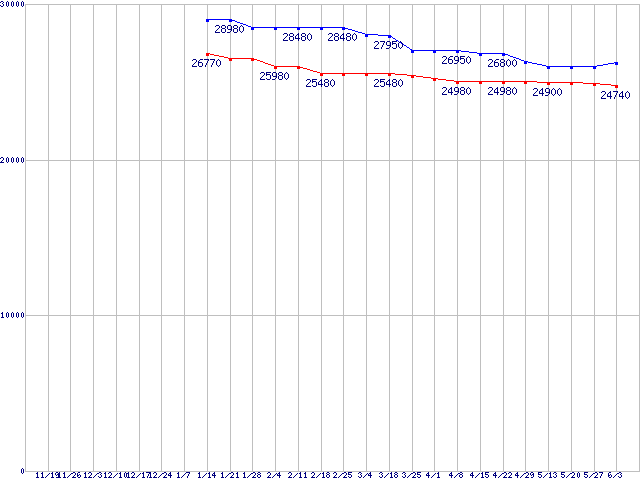 | LGA1155 (Smart Cache 8MB,Quad Core,GPU内蔵,Hyper-Threading,TDP 95W)の最安値推移 |