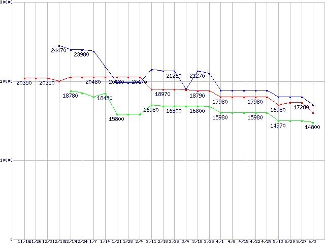 | Phenom II X6の最安値推移 |