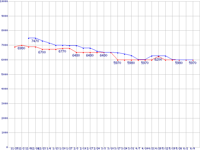 | HDD 750GB〜1TB未満の最安値推移 |
