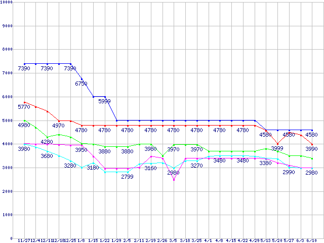 | ※製品名をクリックすると個別のグラフを表示します ※点線部は販売店が確認できなかった、または調査データがないことを示します | |