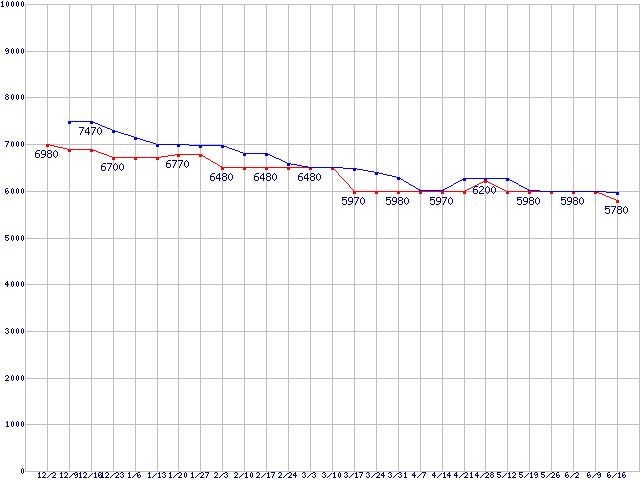 | ※製品名をクリックすると個別のグラフを表示します ※点線部は販売店が確認できなかった、または調査データがないことを示します |