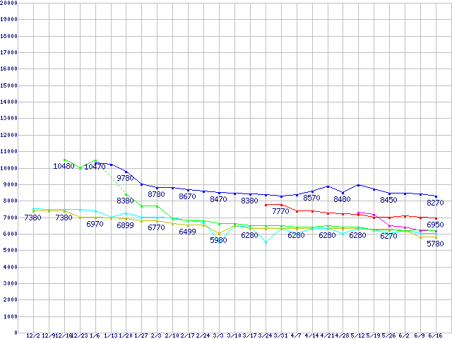 | ※製品名をクリックすると個別のグラフを表示します ※点線部は販売店が確認できなかった、または調査データがないことを示します | |