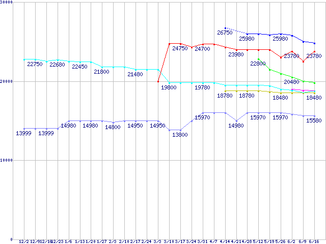 | ※製品名をクリックすると個別のグラフを表示します ※点線部は販売店が確認できなかった、または調査データがないことを示します | |