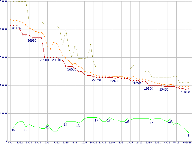 CTFDDAC128MAG-1G1 (128GB,MLC)の価格推移↑前グラフ↓次グラフ(2010年4月1日〜2011年6月16日)※このグラフは過去のデータも税率5%相当に調整した税込み相当額のグラフです。●関連グラフHDD/SSD主要製品の最安値推移HDD/SSD主要製品(最安値1万5千円〜2万円未満)の最安値推移HDD 100〜160GB未満の最安値推移RealSSD C300 (SSD,6Gbps,2.5インチ,リード355MB/s・ライト215〜70MB/s)の最安値推移●凡例最安値(点線部は販売店未確認または未調査)平均値最高値ショップ数