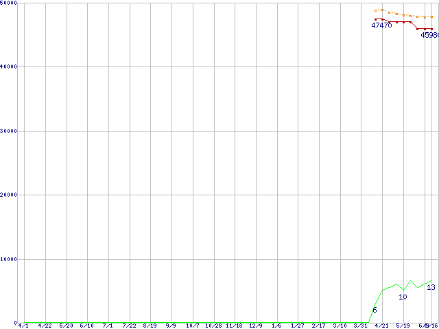 SSD 320 (300GB,MLC)の価格推移↑前グラフ↓次グラフ(2010年4月1日〜2011年6月16日)※このグラフは過去のデータも税率5%相当に調整した税込み相当額のグラフです。●関連グラフHDD/SSD主要製品の最安値推移HDD/SSD主要製品(最安値2万円以上)の最安値推移HDD 300〜400GB未満の最安値推移SSD 320 (SSD,3Gbps,2.5インチ,リード270〜200MB/s・ライト220〜45MB/s)の最安値推移●凡例最安値(点線部は販売店未確認または未調査)平均値最高値ショップ数
