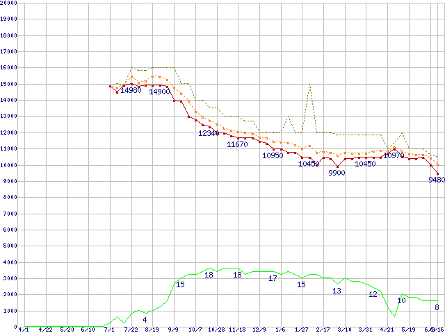 CTFDDAC064MAG-1G1 (64GB,MLC)の価格推移↑前グラフ↓次グラフ(2010年4月1日〜2011年6月16日)※このグラフは過去のデータも税率5%相当に調整した税込み相当額のグラフです。●関連グラフHDD/SSD主要製品の最安値推移HDD/SSD主要製品(最安値1万円未満)の最安値推移HDD/SSD 60GB〜80GB未満の最安値推移RealSSD C300 (SSD,6Gbps,2.5インチ,リード355MB/s・ライト215〜70MB/s)の最安値推移●凡例最安値(点線部は販売店未確認または未調査)平均値最高値ショップ数
