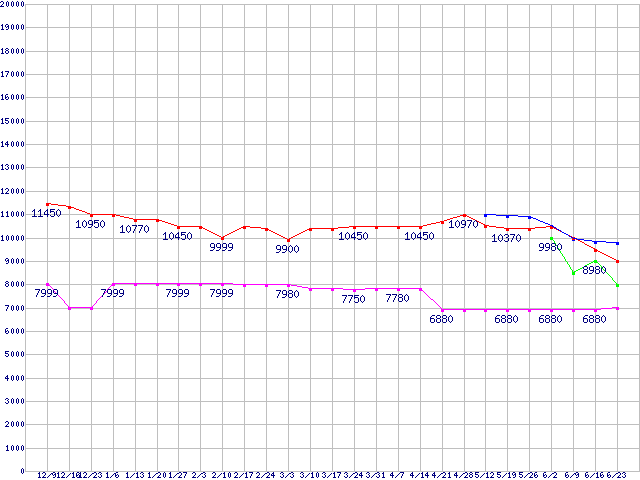 | ※製品名をクリックすると個別のグラフを表示します ※点線部は販売店が確認できなかった、または調査データがないことを示します | |