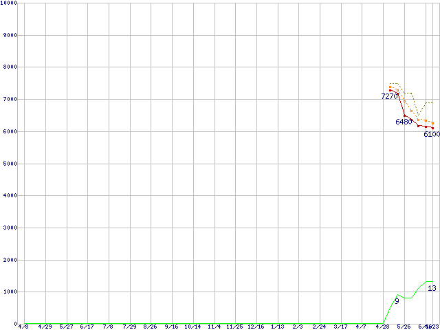 WD20EARX (2TB,64MB)の価格推移↑前グラフ↓次グラフ(2010年4月8日〜2011年6月23日)※このグラフは過去のデータも税率5%相当に調整した税込み相当額のグラフです。●関連グラフHDD/SSD主要製品の最安値推移HDD/SSD主要製品(最安値1万円未満)の最安値推移HDD 2TB〜2.5TB未満の最安値推移WD Caviar Green (6Gb/s)の最安値推移●凡例最安値(点線部は販売店未確認または未調査)平均値最高値ショップ数