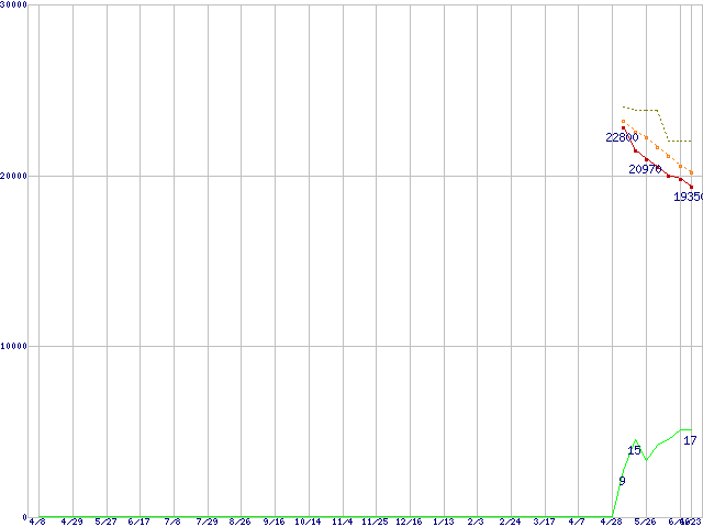 CT128M4SSD2 (128GB,MLC)の価格推移↑前グラフ↓次グラフ(2010年4月8日〜2011年6月23日)※このグラフは過去のデータも税率5%相当に調整した税込み相当額のグラフです。●関連グラフHDD/SSD主要製品の最安値推移HDD/SSD主要製品(最安値1万5千円〜2万円未満)の最安値推移HDD 100〜160GB未満の最安値推移m4 (SSD,6Gbps,2.5インチ,リード415MB/s・ライト260〜95MB/s)の最安値推移●凡例最安値(点線部は販売店未確認または未調査)平均値最高値ショップ数