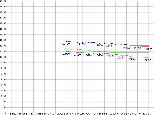 | LGA1155 (Smart Cache 3MB,Dual Core,GPU内蔵,Hyper-Threading)の最安値推移 |
