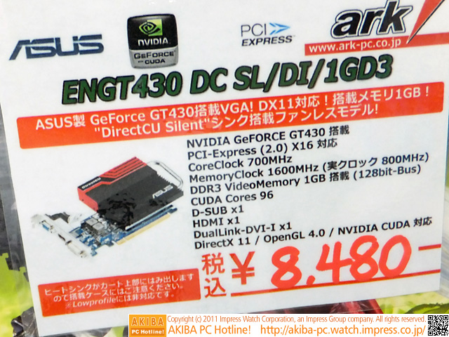 [拡大画像]ASUS ENGT430 DC SL/DI/1GD3