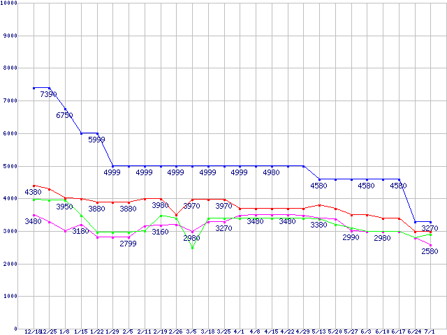 | ※製品名をクリックすると個別のグラフを表示します ※点線部は販売店が確認できなかった、または調査データがないことを示します | |
