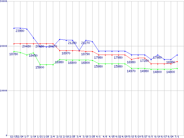 | Socket AM3 (HyperTransport 3.0,6Core)の最安値推移 |