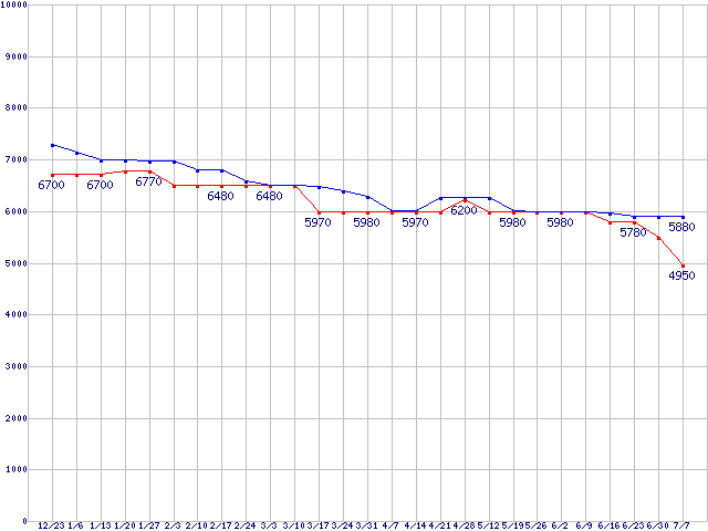 | ※製品名をクリックすると個別のグラフを表示します ※点線部は販売店が確認できなかった、または調査データがないことを示します |