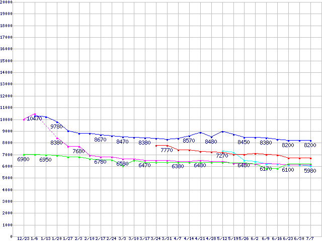 | ※製品名をクリックすると個別のグラフを表示します ※点線部は販売店が確認できなかった、または調査データがないことを示します | |