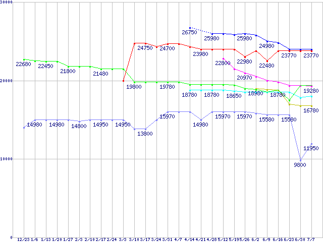 | ※製品名をクリックすると個別のグラフを表示します ※点線部は販売店が確認できなかった、または調査データがないことを示します | |