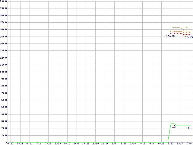 Core i5-2310 (2.90GHz,TDP 95W)の価格推移↑前グラフ↓次グラフ(2010年4月23日〜2011年7月8日)※このグラフは過去のデータも税率5%相当に調整した税込み相当額のグラフです。●関連グラフCPU主要製品の最安値推移CPU主要製品(最安値1万円〜2万円未満)の最安値推移Intel系CPUの最安値推移LGA1155 (Smart Cache 6MB,Quad Core,GPU内蔵)の最安値推移●凡例最安値(点線部は販売店未確認または未調査)平均値最高値ショップ数