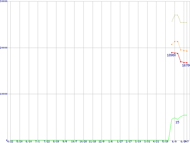 その他6Gbps対応SSD (120〜128GB,MLC)の価格推移↑前グラフ↓次グラフ(2010年4月22日〜2011年7月7日)※このグラフは過去のデータも税率5%相当に調整した税込み相当額のグラフです。●関連グラフHDD/SSD主要製品の最安値推移HDD/SSD主要製品(最安値1万5千円〜2万円未満)の最安値推移HDD 100〜160GB未満の最安値推移2.5インチSSD (SSD,6Gbps,2.5インチ)の最安値推移●凡例最安値(点線部は販売店未確認または未調査)平均値最高値ショップ数