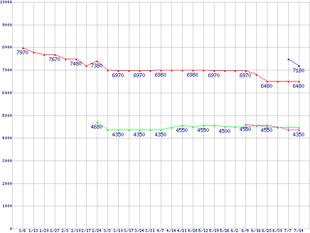 | ※製品名をクリックすると個別のグラフを表示します ※点線部は販売店が確認できなかった、または調査データがないことを示します | |
