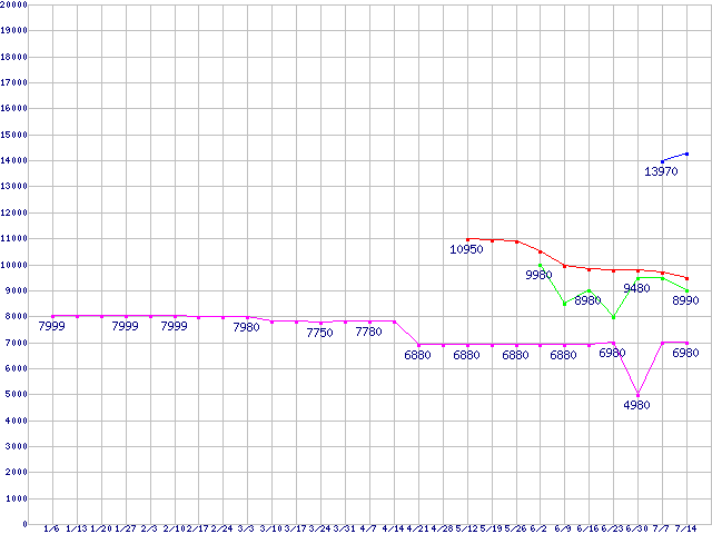 | ※製品名をクリックすると個別のグラフを表示します ※点線部は販売店が確認できなかった、または調査データがないことを示します | |