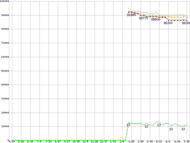Core i7-990X Extreme Edition (3.46GHz)の価格推移↑前グラフ↓次グラフ(2010年4月30日〜2011年7月15日)※このグラフは過去のデータも税率5%相当に調整した税込み相当額のグラフです。●関連グラフCPU主要製品の最安値推移CPU主要製品(最安値6万円以上)の最安値推移Intel系CPUの最安値推移LGA1366 (QPI 6.4GT/s,L3キャッシュ12MB,6Core,Hyper-Threading,TDP 130W)の最安値推移●凡例最安値(点線部は販売店未確認または未調査)平均値最高値ショップ数