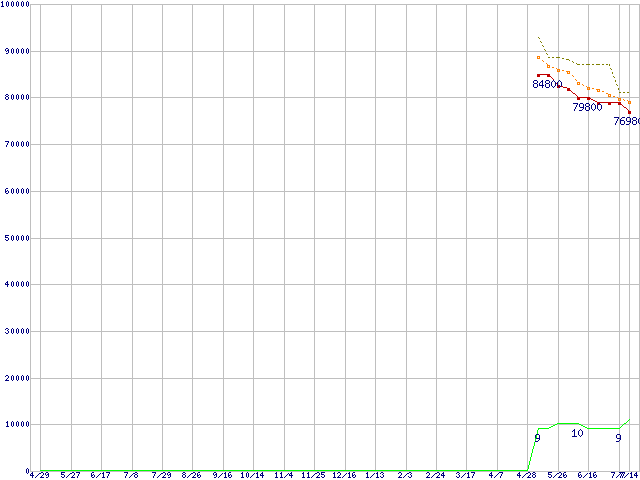 CT512M4SSD2 (512GB,MLC)の価格推移↑前グラフ↓次グラフ(2010年4月29日〜2011年7月14日)※このグラフは過去のデータも税率5%相当に調整した税込み相当額のグラフです。●関連グラフHDD/SSD主要製品の最安値推移HDD/SSD主要製品(最安値2万円以上)の最安値推移HDD 500〜600GB未満の最安値推移m4 (SSD,6Gbps,2.5インチ,リード415MB/s・ライト260〜95MB/s)の最安値推移●凡例最安値(点線部は販売店未確認または未調査)平均値最高値ショップ数