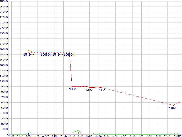 その他2.5インチSSD (512GB,MLC)の価格推移↑前グラフ↓次グラフ(2010年4月29日〜2011年7月14日)※このグラフは過去のデータも税率5%相当に調整した税込み相当額のグラフです。●関連グラフHDD/SSD主要製品の最安値推移HDD/SSD主要製品(最安値2万円以上)の最安値推移HDD 500〜600GB未満の最安値推移2.5インチSSD (SSD,3Gbps,2.5インチ)の最安値推移●凡例最安値(点線部は販売店未確認または未調査)平均値最高値ショップ数