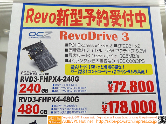 OCZの超高速PCIe-SSD「RevoDrive 3」が月末入荷 公称1GB/sの7万円モデルも