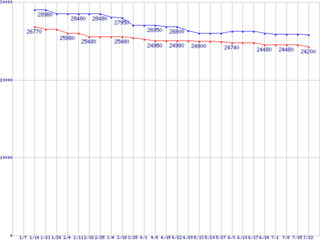 | CPU主要製品(最安値2万円〜3万円未満)の最安値推移 |