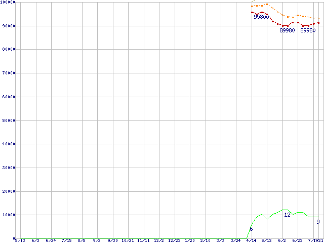 SSD 320 (600GB,MLC)の価格推移↑前グラフ↓次グラフ(2010年5月13日〜2011年7月21日)※このグラフは過去のデータも税率5%相当に調整した税込み相当額のグラフです。●関連グラフHDD/SSD主要製品の最安値推移HDD/SSD主要製品(最安値2万円以上)の最安値推移HDD 600〜750GB未満の最安値推移SSD 320 (SSD,3Gbps,2.5インチ,リード270〜200MB/s・ライト220〜45MB/s)の最安値推移●凡例最安値(点線部は販売店未確認または未調査)平均値最高値ショップ数