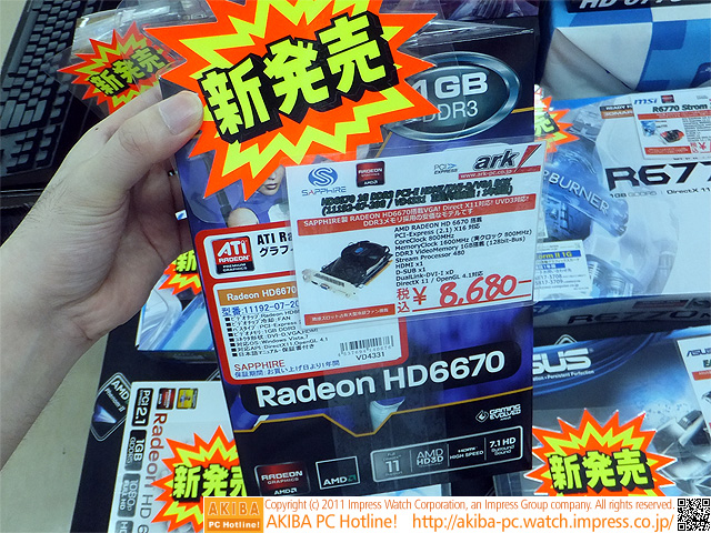 AKIBA PC Hotline!今週見つけた新製品:ビデオカード [拡大画像]SAPPHIRE HD6670 1G DDR3 PCI-E HDMI/DVI-D/VGA(11192-07-20G)前の画像←[記事に戻る]