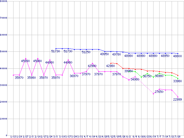 | ※製品名をクリックすると個別のグラフを表示します ※点線部は販売店が確認できなかった、または調査データがないことを示します | |