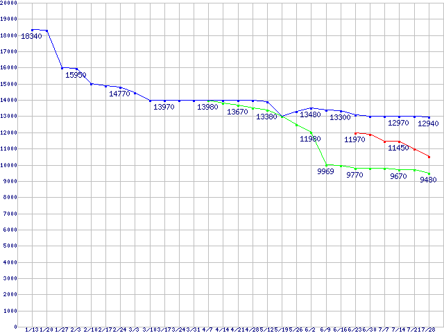 | HDD 3TB以上の最安値推移 |